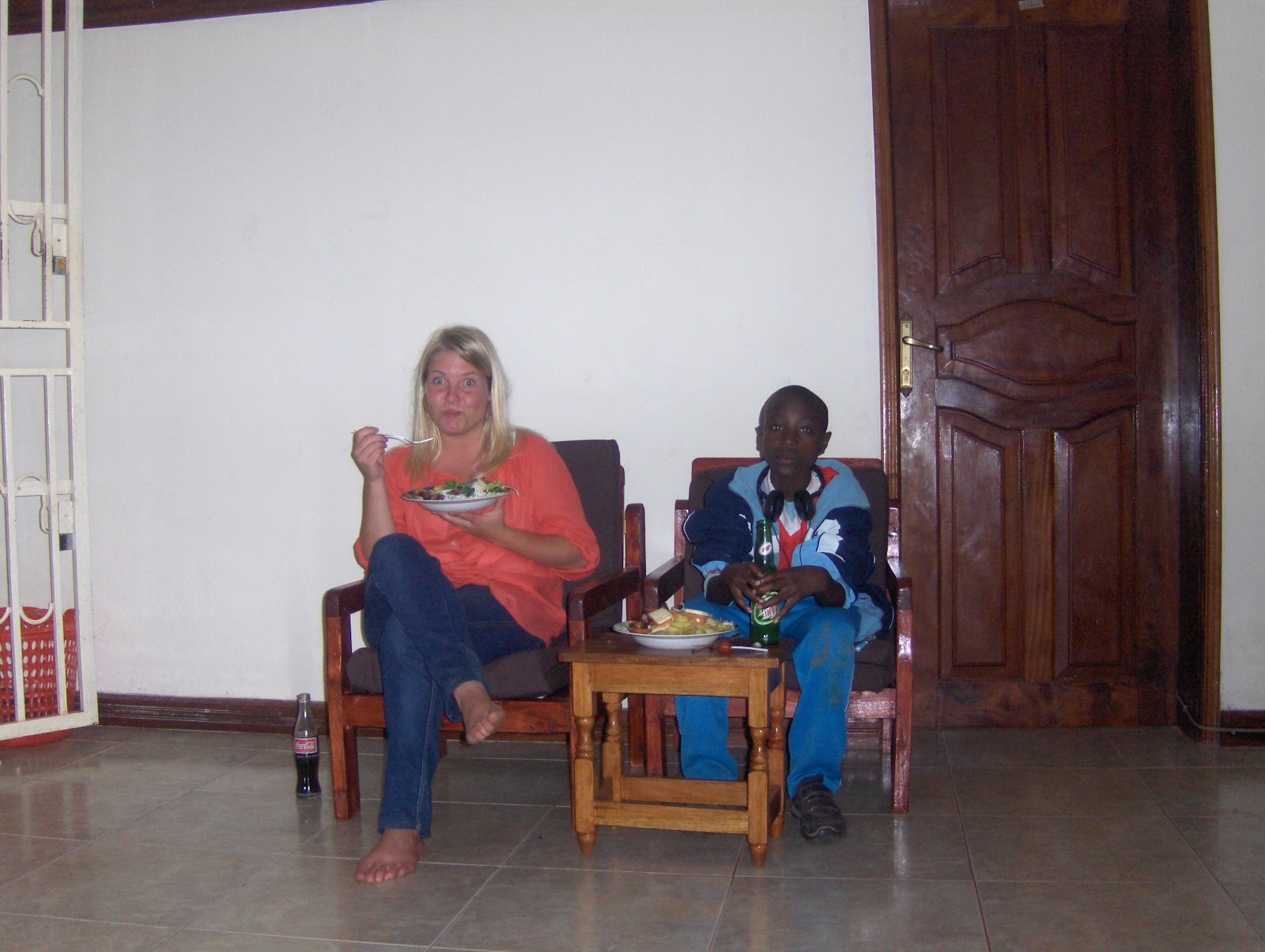 Killarna har ju lov nu och vi var rädda för att vi skulle ha svårt att underhålla dem och att de skulle bli rastlösa. Inte då. De börjar morgnarna med jogging (de som vill) och gympa i trädgården. Sen har de undervisning i fyra timmar. På eftermiddagen går vi oftast till fotbollsplanen. Igår spelade vi brännboll med dem för första gången, de snappade snabbt upp reglerna och hade jätteroligt. Efter det blev det grillning och musik i vår trädgård.