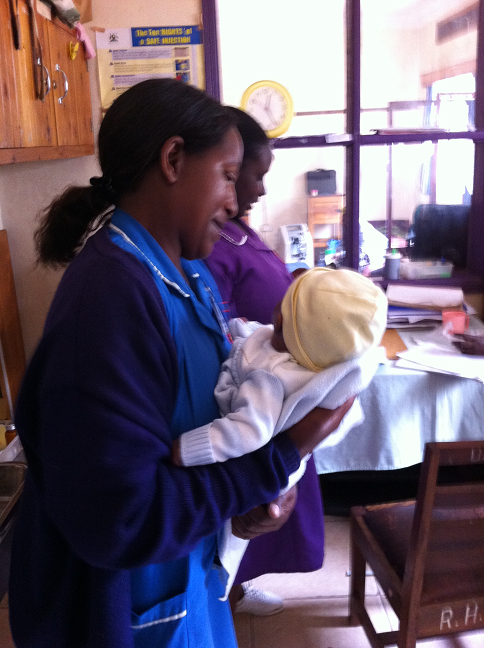 Idag tog jag och Alex med Isaac till Rugarama Hospital (där han vårdades efter att ha blivit dumpad i ett buskage av sin mamma) för att väga honom och hälsa på sköterskorna som tog hand om honom. Det blev ett glatt återseende.