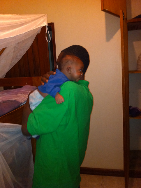 Vi i personalen hjälps åt att ta hand om honom, främst jag, Alex och Irene. Jag har nattpassen från ca 00-06. Han har hittills ätit innan han somnat vid 23.30-tiden, sen vaknat runt 02-03, fått en flaska och somnat gott igen. Därefter har han vaknat en gång till, runt 05.30-tiden, fått mat sen har jag bytt på honom och lämnat över honom till Alex som har morgonpasset. Då har jag gått och lagt mig igen (hö hö). På morgonen verkar han ha gilla att ligga och spana på resten av grabbarna när de gör sig i ordning för skolan. Sen får han mat och somnar en stund igen. Under förmiddagen hjälps Alex och Irene åt med honom och när jag vaknat så gör jag likadant och så fortsätter det under dagen. När pojkarna kommer hem från skolan vill de gärna hjälpa till och på kvällarna har han det gott i famnen på någon av dem.