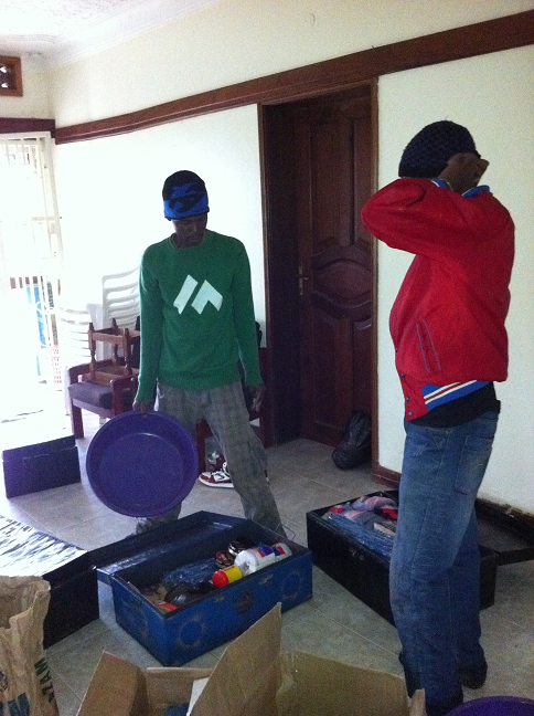 | Alex och Andrew hjälpte till att organisera killarnas packning |