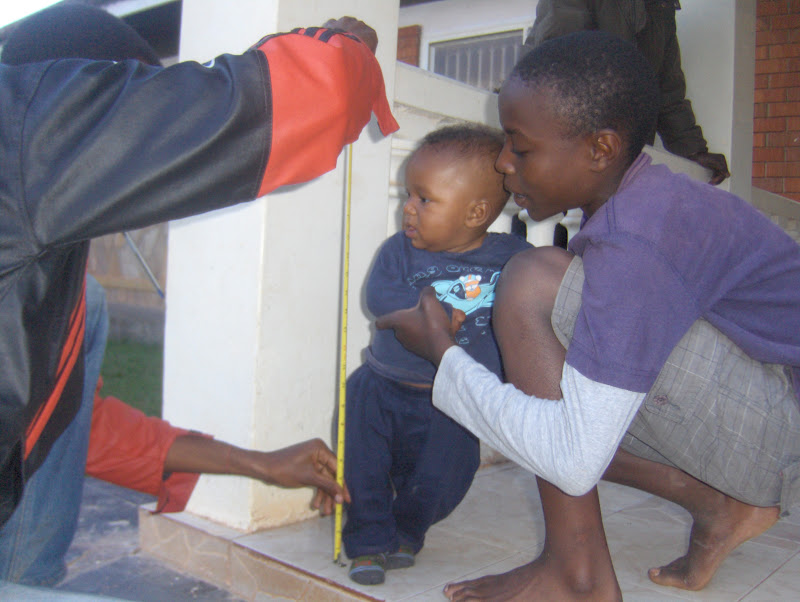 Att killarna växer går det inte att missa men för att veta hur mycket, väger och mäter vi dem två gånger om året. Såhär såg det ut i veckan när det var dags igen. Eftersom vi inte har någon våg hemma får de gå iväg till Rugarama Hospital och låna deras.