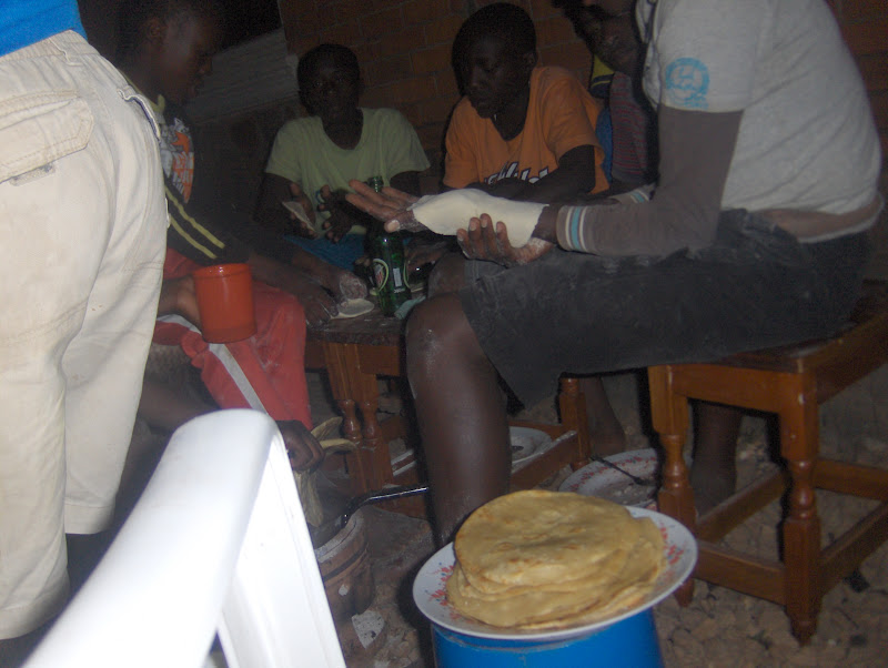 Aje är vår främste chapatibagare men flera av de andra har också blivit riktigt duktiga (Chapati är ett slags bröd åt tortilla/naanhållet som är väldigt vanligt i Uganda). En läsare frågade för ett tag sen om receptet och jag lovade att återkomma med det. Igår bakade grabbarna igen och passade då på att köra en chapatiskola för oss här i Sverige.