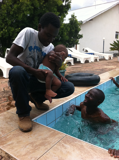 | Alex tog honom till poolkanten och provade att doppa hans fötter i vattnet. Det var INTE populärt. |