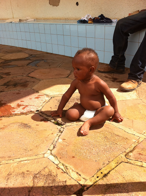 | Isaac sprattlade som bara den där han satt i mitt knä och ville närmare poolen så vi bestämde oss för att klä av honom för att han inte skulle bli alldeles genomblöt. |