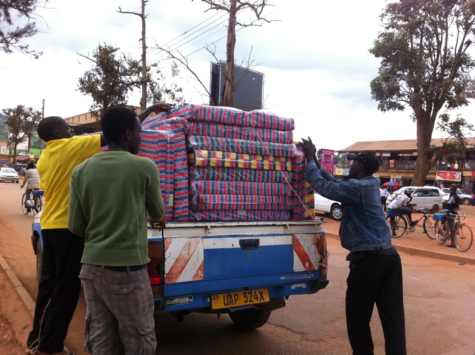 | Vi hyrde en pickup, lastade alla madrasser och begav oss hemåt… |