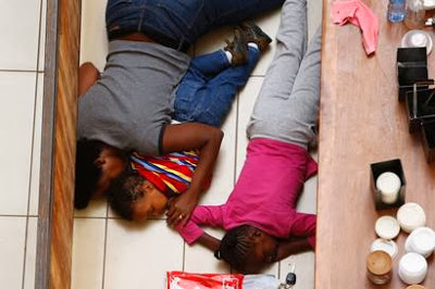 | En mamma och hennes barn gömmer sig för skyttarna i Westgate-gallerian i Kenya. (Foto: Reuters) |