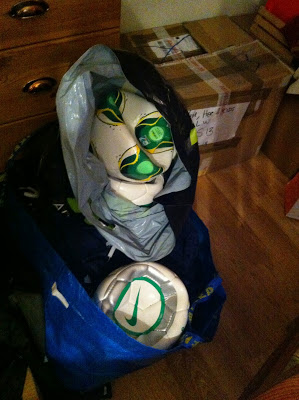 | Här är de bollar som Alex inte fick med sig tidigare i sommar. De är nu nedpackade och redo för avfärd till Uganda imorgon. |