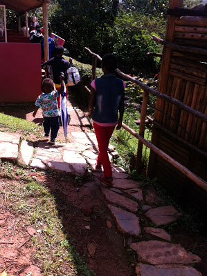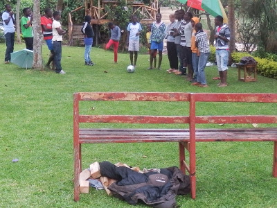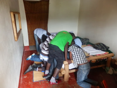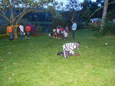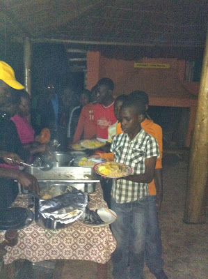 | Efter skattjakten var det dags för middag. Det serverades köttgryta, ris, potatis och matoke (kokbananer) och maten var väldigt uppskattad av alla. |