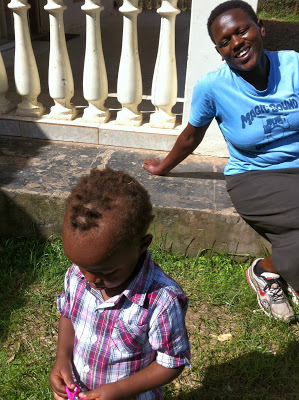 | Själv var Isaac inte jätteförtjust över klippningsidén men när han fick en egen sax och kapade grässtrån under tiden lät han Stidia göra sitt jobb. |