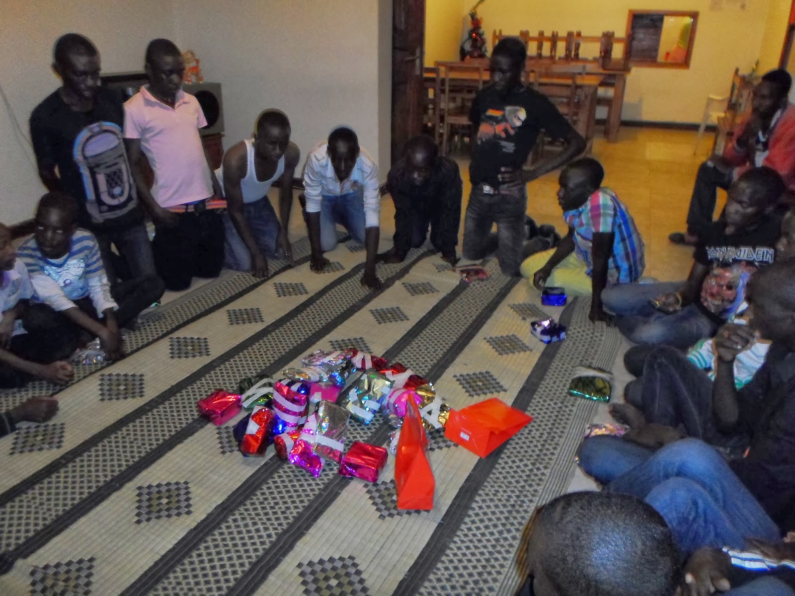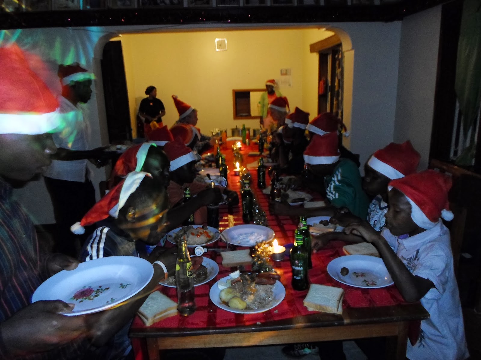 | Isaac, Tugume och Kwesiga laddade för julbord |