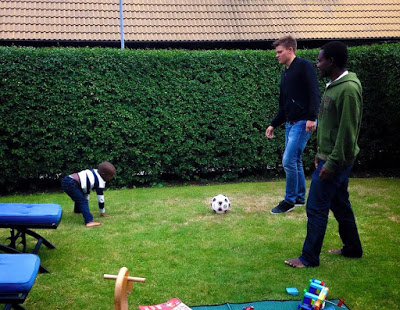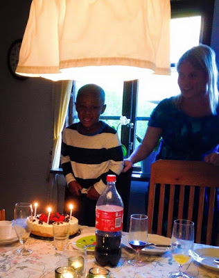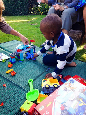 Våra släktingar kunde ju inte vara med när vi firade hans 3-årsdag i Kabale i januari. Därför passade vi på att ställa till med ett extrakalas på Isaacs 3 1/2-årsdag förra veckan.