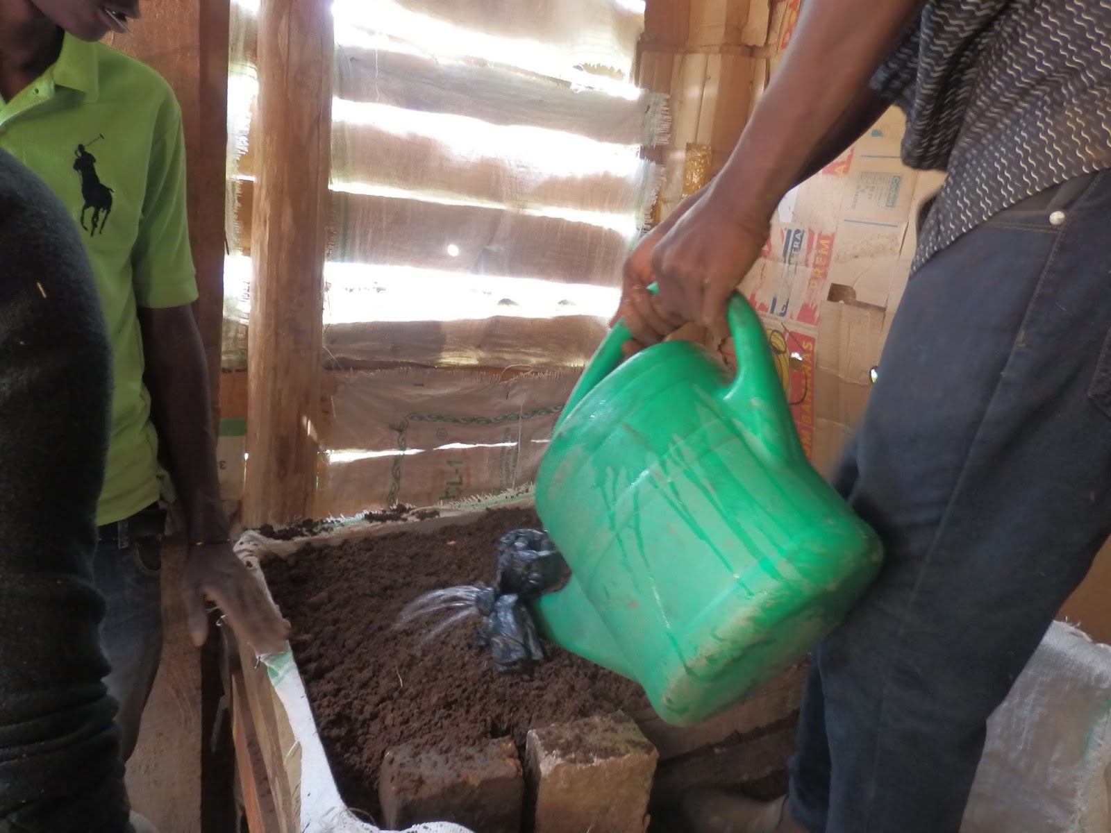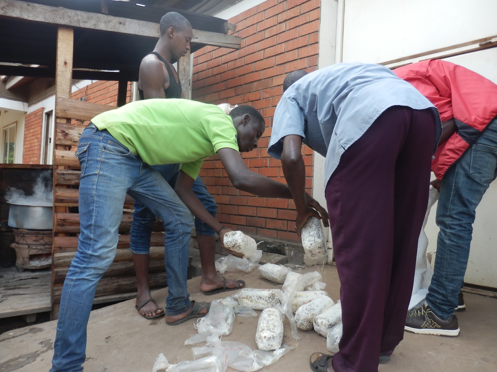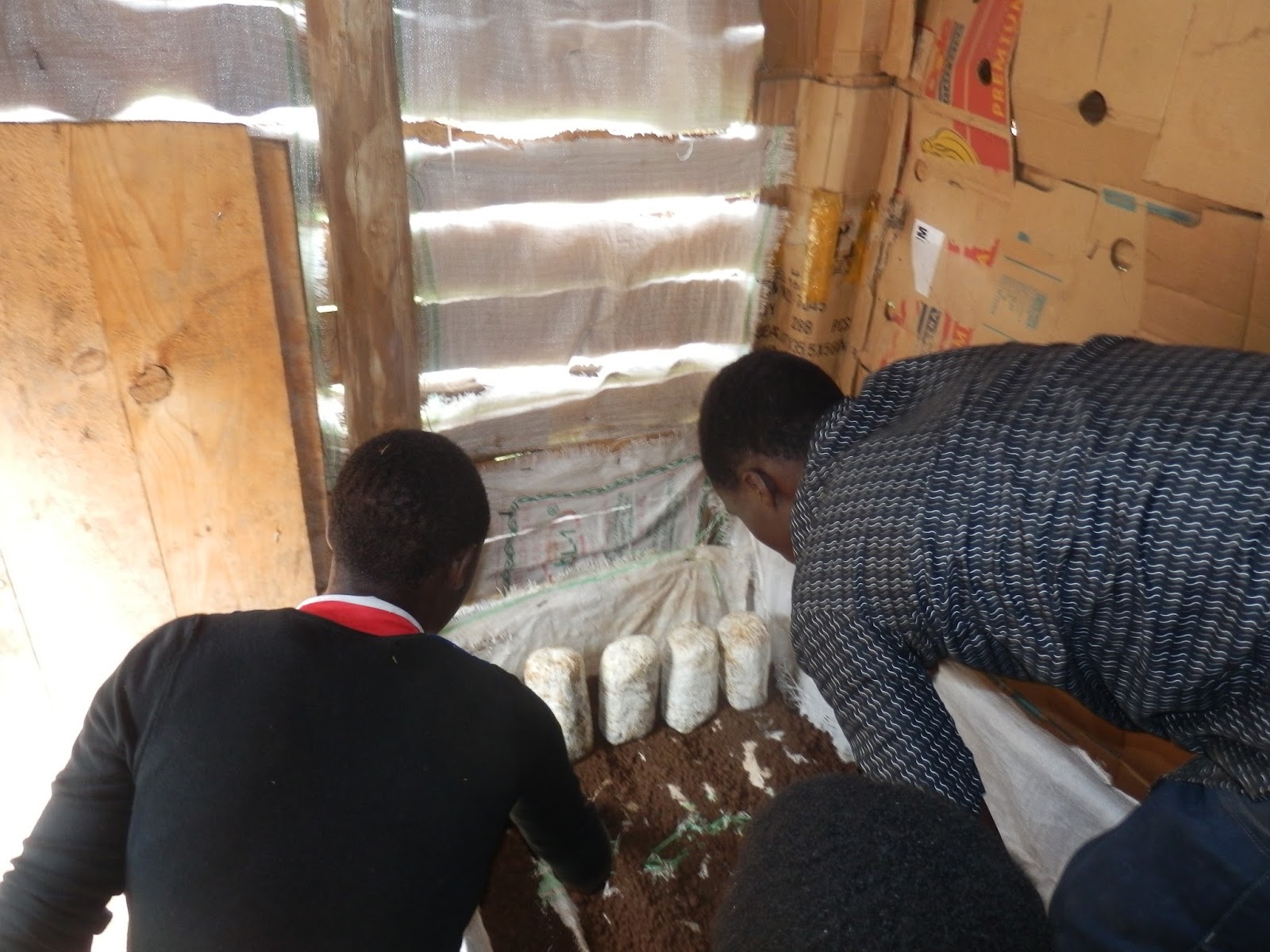 I Kabale rullar allt på, i veckan kom äntligen svampen vi beställt. Mannen som levererade dem visade sig vara en expert på området och var snäll nog att stanna kvar och visa hur de skulle planteras.