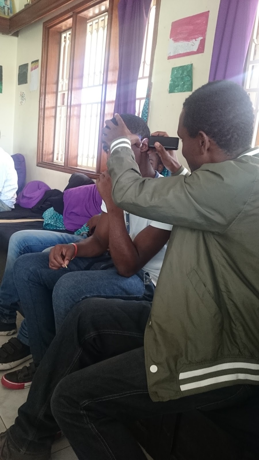 | Joram försöker få tag på den men det går trögt. Får nog bli en tur till vårdcentralen istället… |