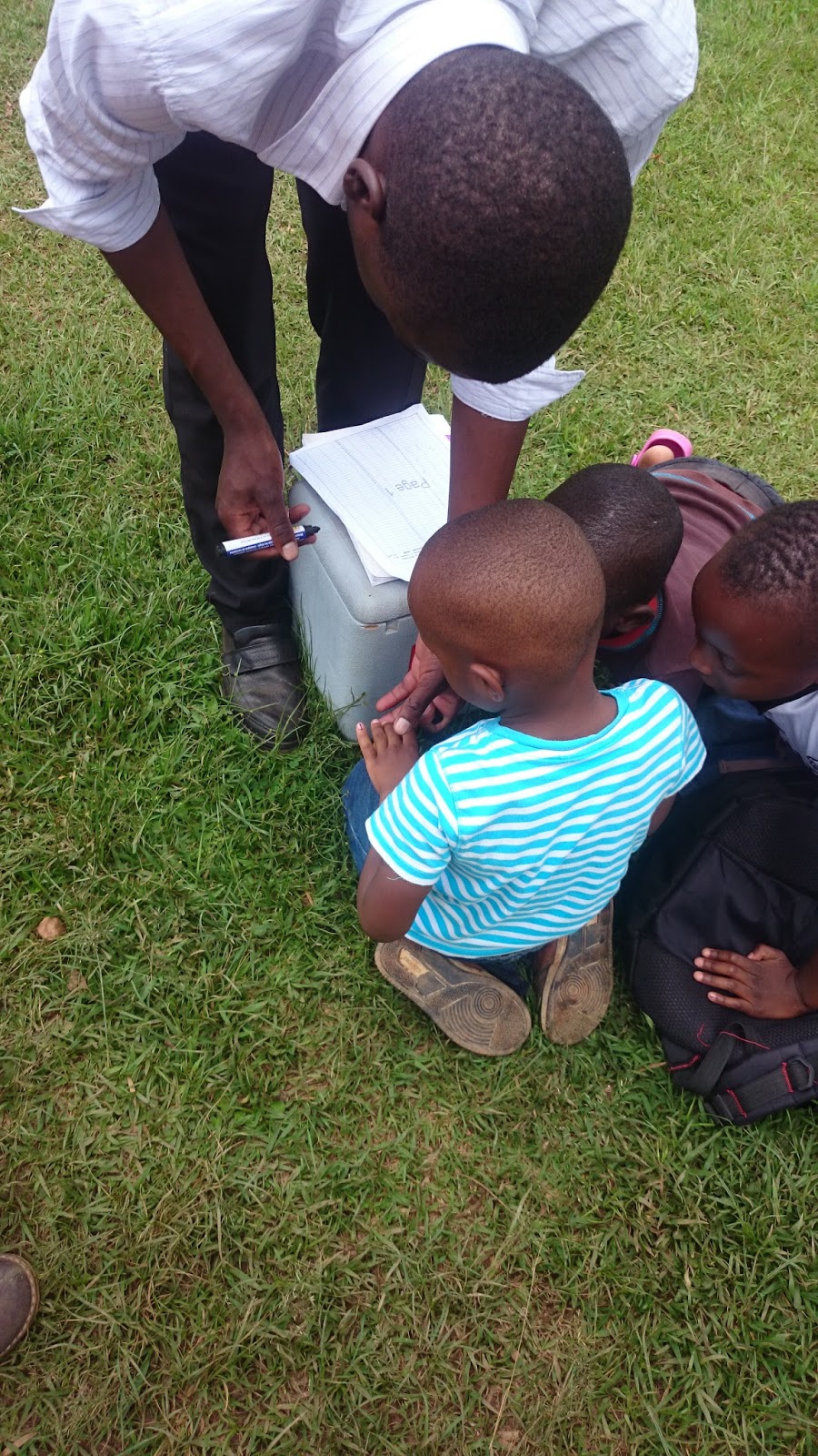 | Efteråt registrade man deras namn och märkte deras lillfingernagel för att veta att de är färdigvaccinerade. |