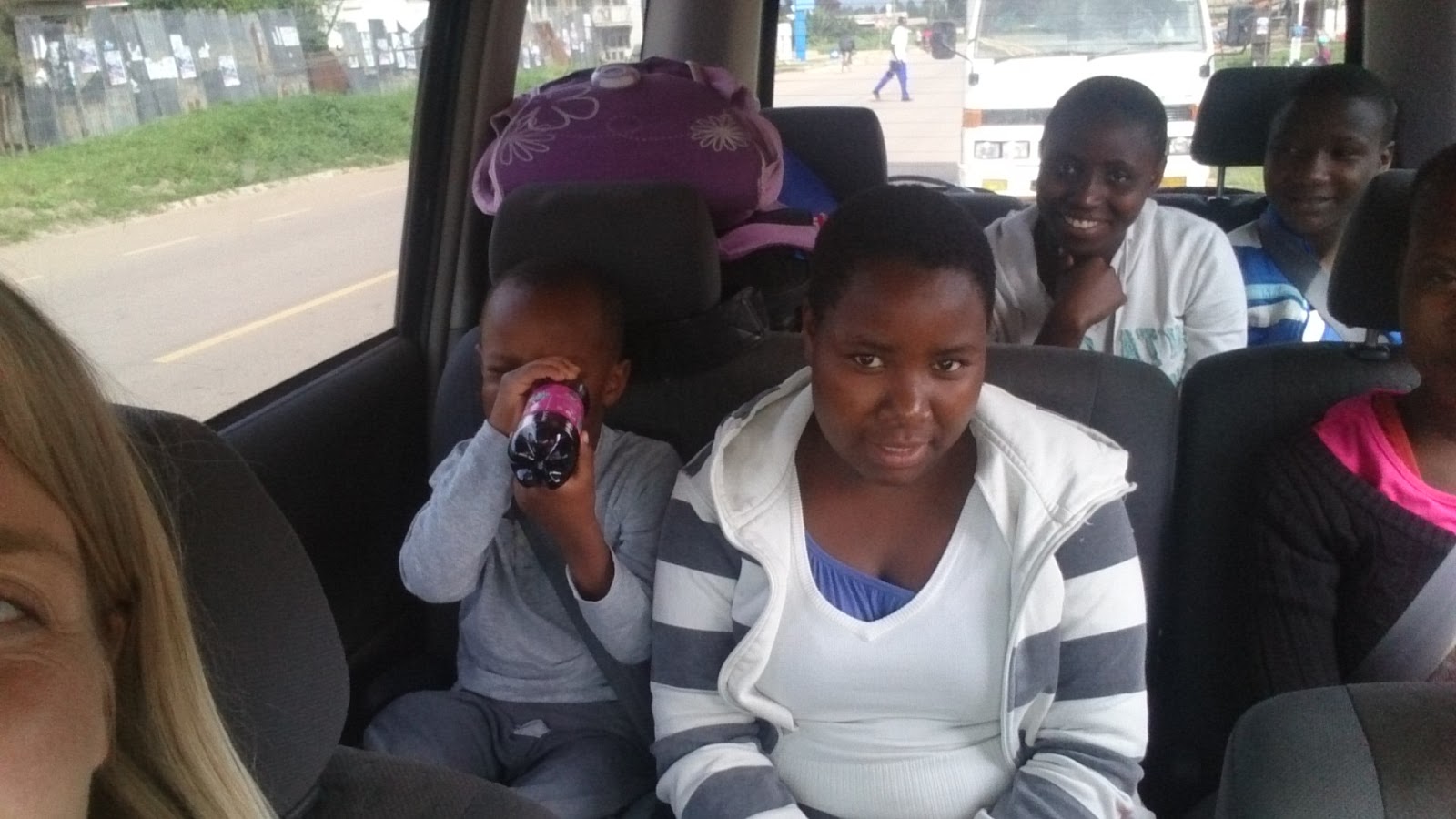 | Daphine, Immaculate, Shakira och Mary hade ”äran” att bli underhållna av vår lille entertainer i baksätet. Tror dock inte någon hade nåt emot att han däckade efter några mil. |