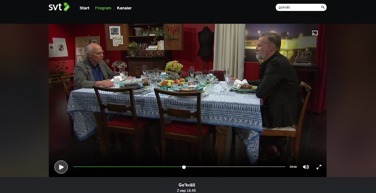 Nyligen fick jag veta att han skulle vara gäst TV-programmet Go’kväll i SVT och hålla en fiktiv middagsbjudning där han fick bjuda in vilka fyra gäster som helst.